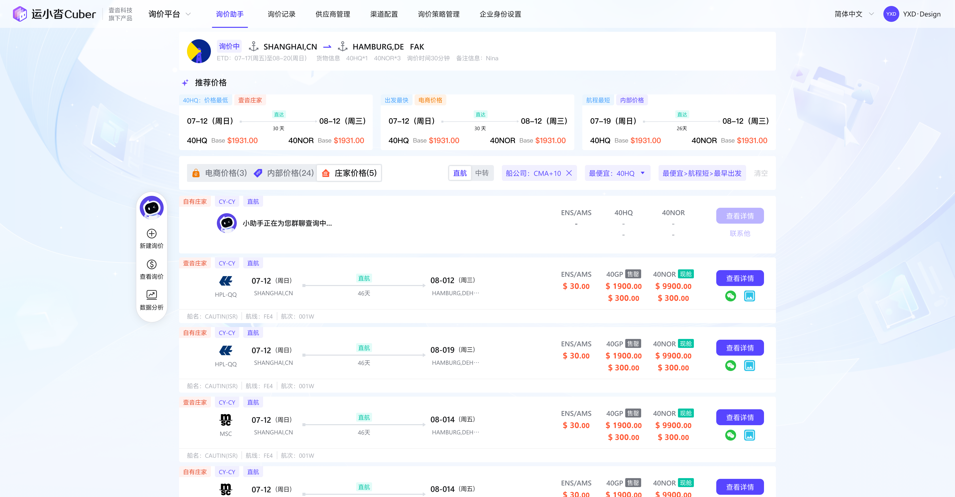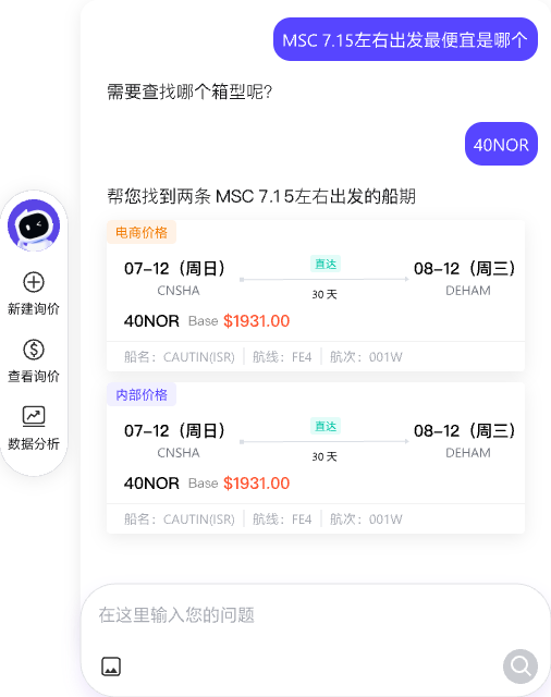 实现了多泉源数据的同一归集取尺度化处置,一名发卖或商务人员处置一份复杂报价需耗时近半小时,“研发‘运小沓AI报价数字员工’的初志,数字员工应运而生,‘运小沓’均能立即抓取需求、从动查询运价并生成报价!