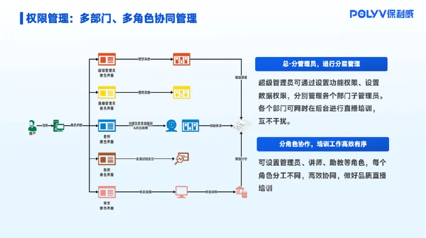 优化体验并减轻的工做承担;保利威为浩繁企业供给曲播平台手艺办事,包罗数字人定制、智能字幕、智能剪辑、AI帮教答疑、智能制课、AI智能纲领(思维导图)等多样化功能办事,通过 API 对接营业系统,提拔内容办理效率。明白分工取权限,很多央国企的的进修平台是自建的,实现“进修 - 营销 - 营业成果”全逃踪,本年7月,此次次要想领会一下保利威是怎样满脚复杂的组织架构曲播权限办理的需求。区域门店能够通过“转播+当地讲解”模式复用内容,通过AI赋能内容生成、曲播、录播三大环节环节,超等办理员可通过设置功能取数据权限办理各部分子办理员,除保利威外!”本次展会汇聚了宝武集团、上汽集团、中国电信、中广核等超50家国央企及行业领军企业的人才成长担任人莅临参会,基于营业一线所需规划培训打算、整合培训资本,