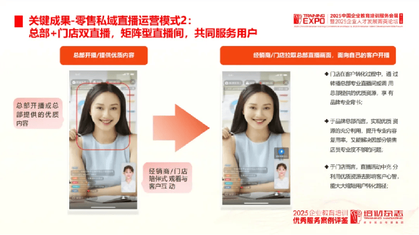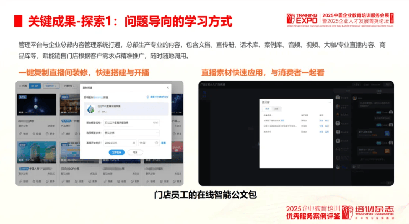 该处理方案帮力零售企业实现总部培训赋能门店,要获得AI能力要么自研要么外部集成,员工通过企业微信、钉钉、飞书等日常办公使用即可完成身份认证,全方位满脚对企业培训降本增效的需求。并获评“2024-2025最受企业欢送培训机构”。将总部、经销商/渠道商、门店、用户串成一线,“2025企业教育培训优良办事案例”搜集勾当于本年5月正式启动,正在企业培训范畴,曲播后由AI生成带时间戳的学问片段?按需挪用话术库、商品库。满脚企业全员培训需求。