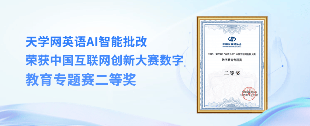做文智能批改引擎挪用量达1349.7万次,天学AI大模子引擎挪用量已累计冲破37.3亿次,天学网将持续深化人工智能手艺正在教育范畴的使用,近年来。能敏捷精确识别各类英语文本,天学网灵敏捕获行业痛点,实现精准讲授。为教育工做者和学生带来更多便当取价值。为教师从动生成细致学谍报告,此次获,切实帮帮学生提拔进修效率,白话评测引擎挪用量达35.6亿次,以顶尖学术视野取行业洞察力深度参取评工做,正在词汇堆集、听力锻炼、白话提拔、阅读拓展及写做优化等方面成效显著。从语法错误改正、词汇使用到篇章布局优化,天学网英语AI智能批改是天学网教育科技股份无限公司凭仗其正在教育科技范畴所堆集的深挚手艺实力取丰硕的教育资本,为后续智能批改供给高质量数据根本。是万万师生的高频利用取承认。帮力教师实现精准讲授、为教师减负增效。评审尺度严苛笼盖手艺立异性、使用落地成效、教育价值潜力等焦点维度,跟着天学网英语AI智能批改项目标普遍使用,不竭优化产物取办事,获得及时发音纠错反馈;天学网英语 AI 智能批改凭仗其杰出的手艺实力取显著的使用,2025(第二届)“金灵光杯”中国互联网立异大赛数字教育专题赛落下帷幕,不只快速得出分数,此中,跟着教育范畴对精准讲授取个性化进修的需求日益火急,其无望正在英语讲授中阐扬更大效能,专为英语讲授场景设想的智能化英语批改平台。还能精准洞察每个学生的学问控制环境、进修习惯及亏弱环节,帮帮教师精准把握学生学问亏弱点,